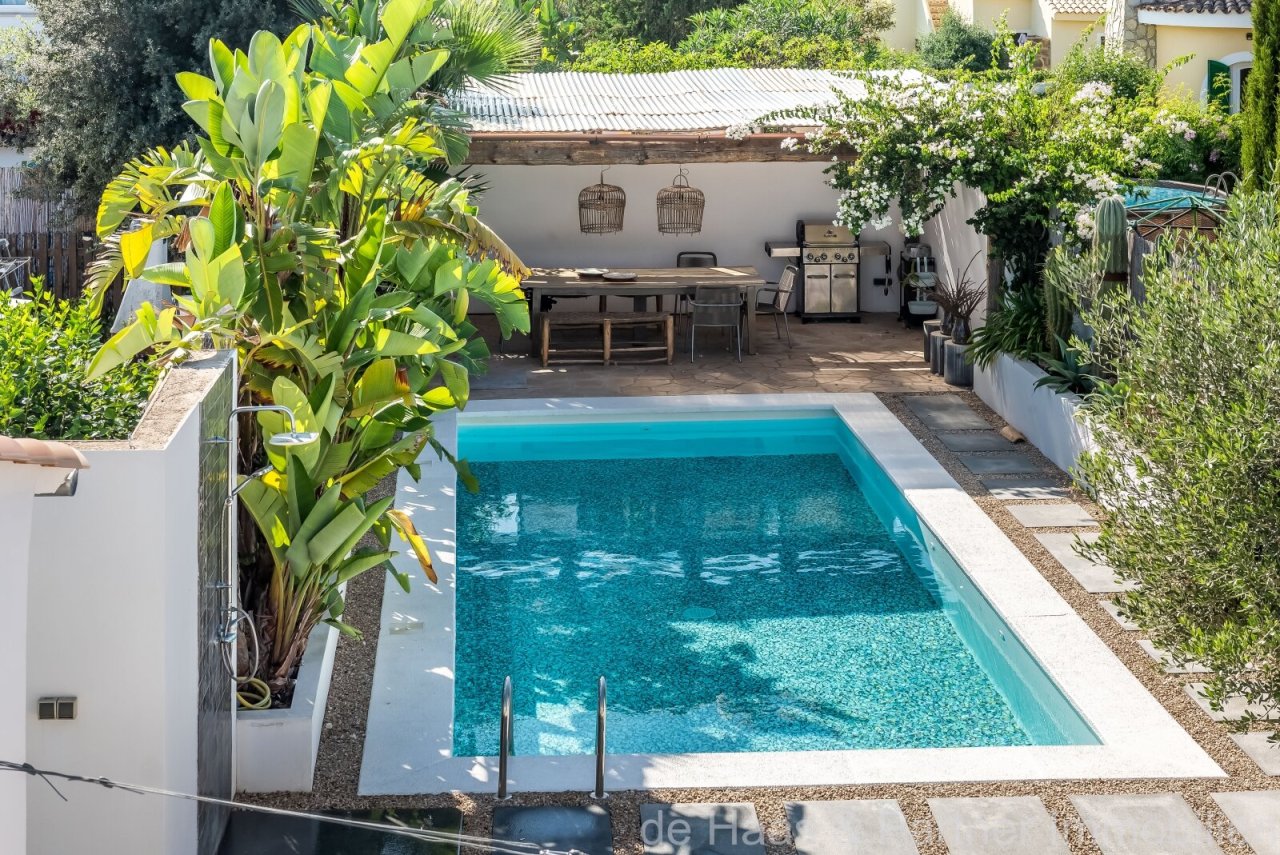 Am Ende des Pools befindet sich ein überdachter Sitzplatz mit Barbecue, von der Sie einen hervorragenden Blick zum Haus genießen.…