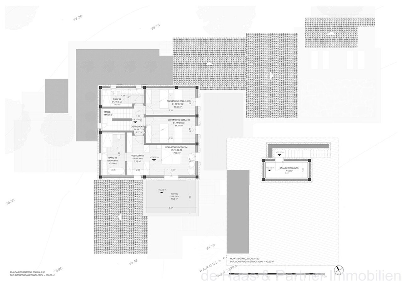 1. OG: Master Schlafzimmer mit Bad en Suite und Ankleideraum, sowie zwei weitere Schlafzimmer und ein Bad. Vom Master Schlafzimmer ist ein Zugang zu einer großen Meerblickterrasse gegeben.