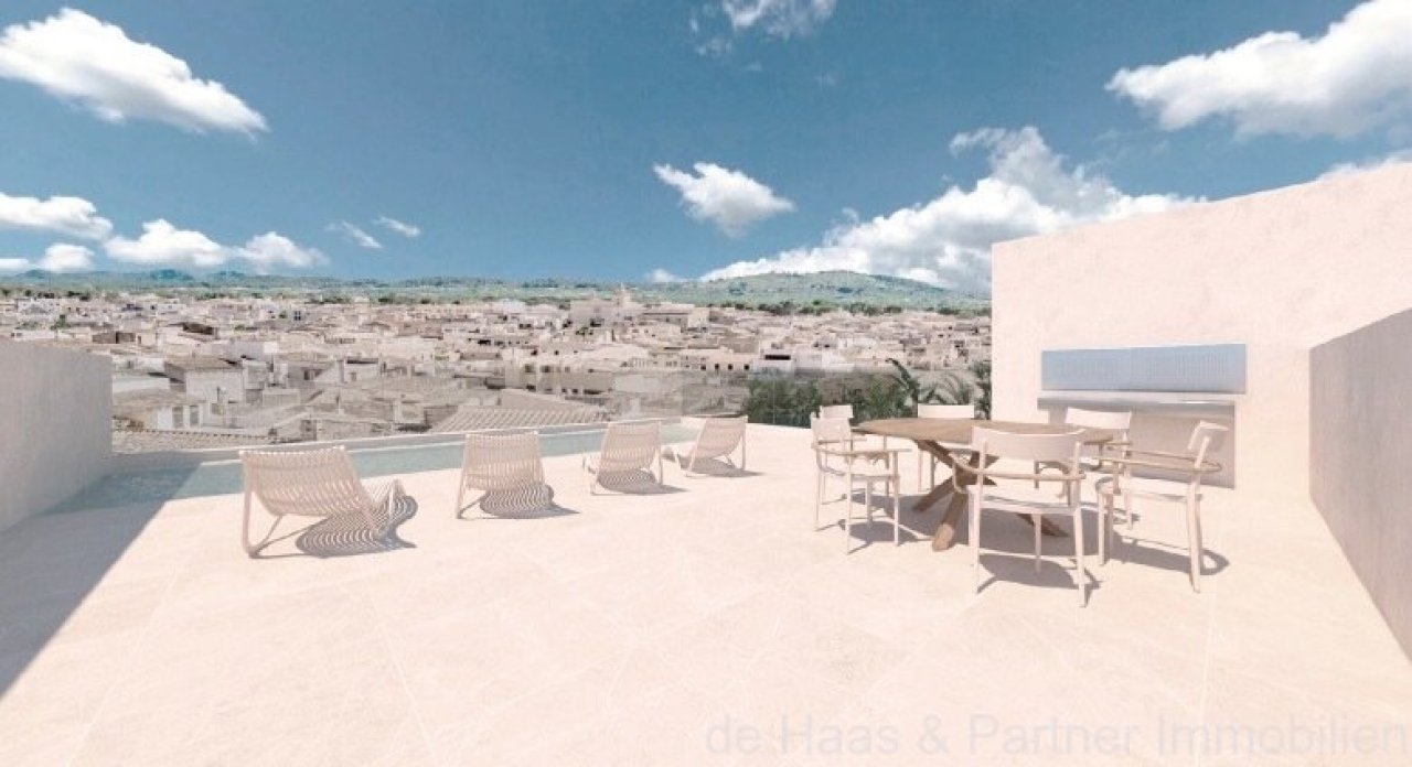 Das Neubauprojekt liegt am Ortsrand von Artà und doch fußläufig zu allen Einkaufsmöglichkeiten und Restaurants des Dorfes. Das Grundstück mit 1250 m² verfügt über ein Projekt, das den Bau von 2 Penthäusern im Duplex - Stil (177 m²) mit privater Dachterrasse und Pool (ca. 160 m²), sowie 2 Wohnungen in der ersten Etage (177 m² Wohnfläche) mit einer Terrasse (27 m²) und ebenfalls mit gehobener Ausstattung beinhaltet. Die Wohnungen verfügen über je 3 Schlafzimmer mit 3 en-Suite Bädern, sowie über einen großen Wohnbereich mit bodentiefen Fenstern, Kamin und einer offenen Küche.