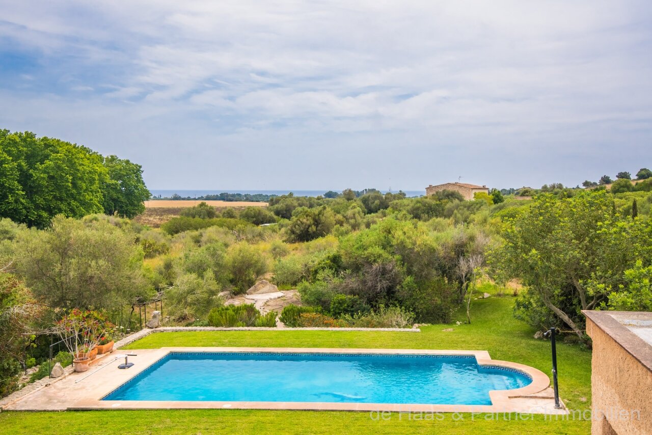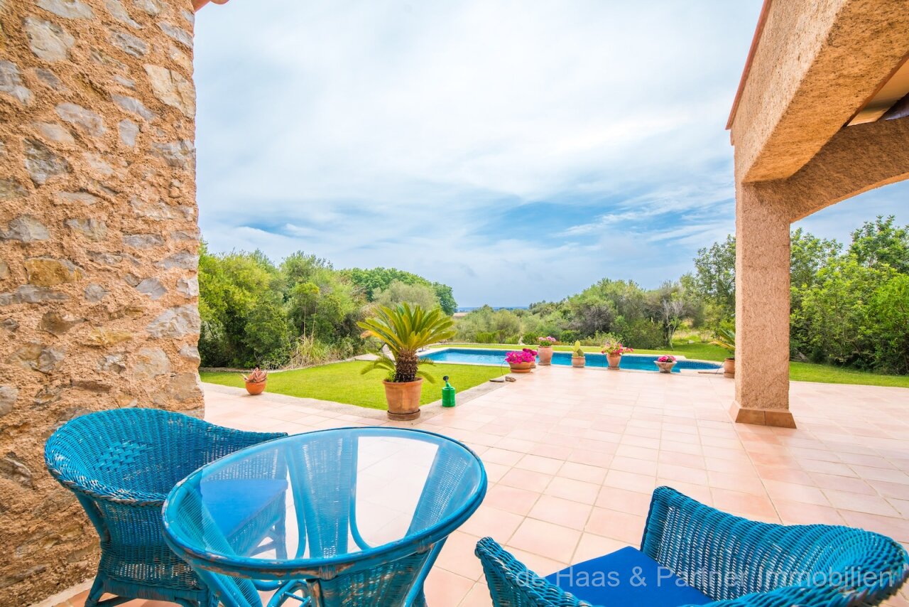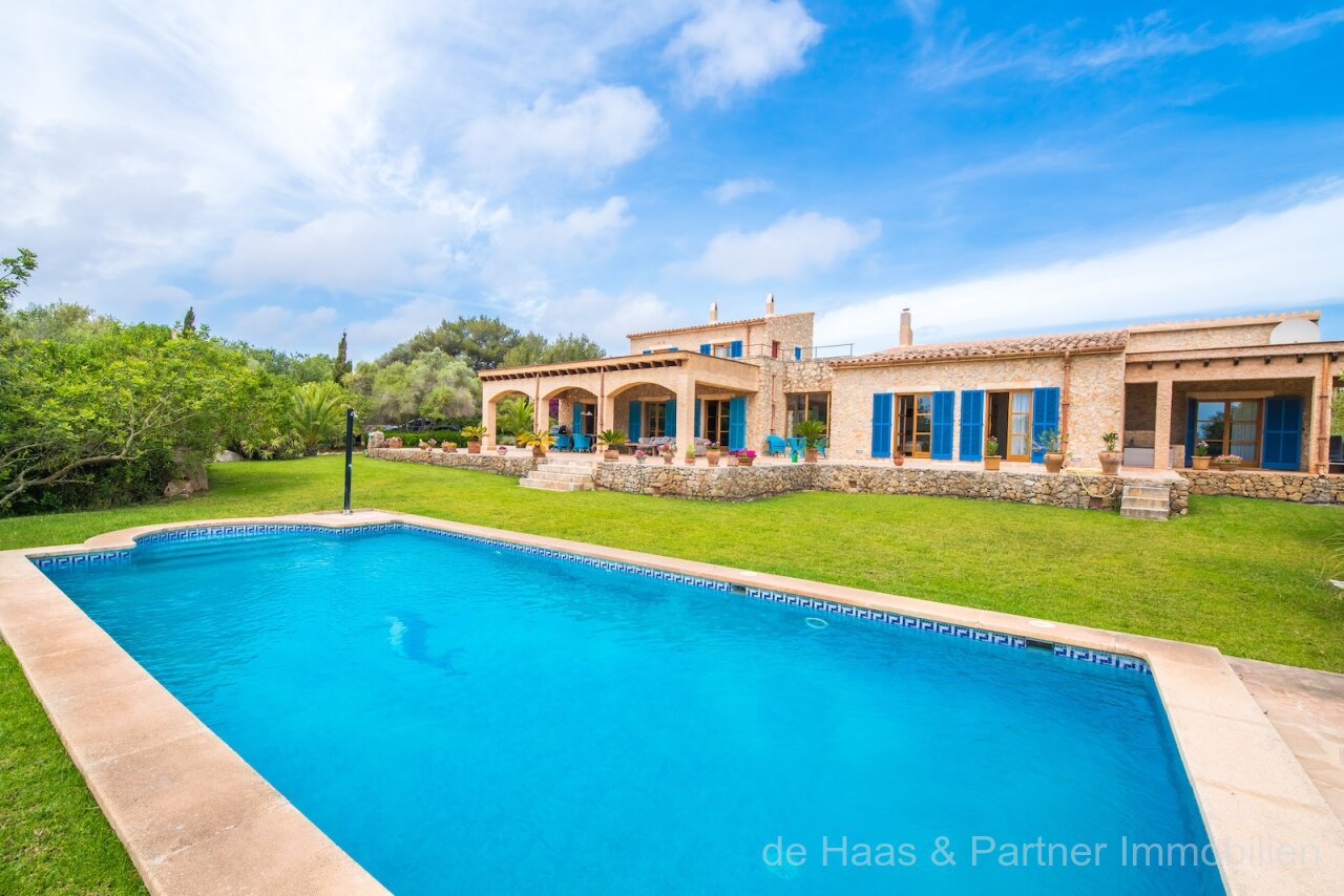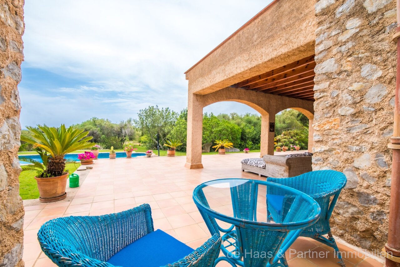 Finca is in a very good and quiet location near Son Servera and Costa de los Pinos. Best sea view of the bay of Costa de los Pinos. Well-kept plot (approx. 7.103m2) with beautifully landscaped gardens.