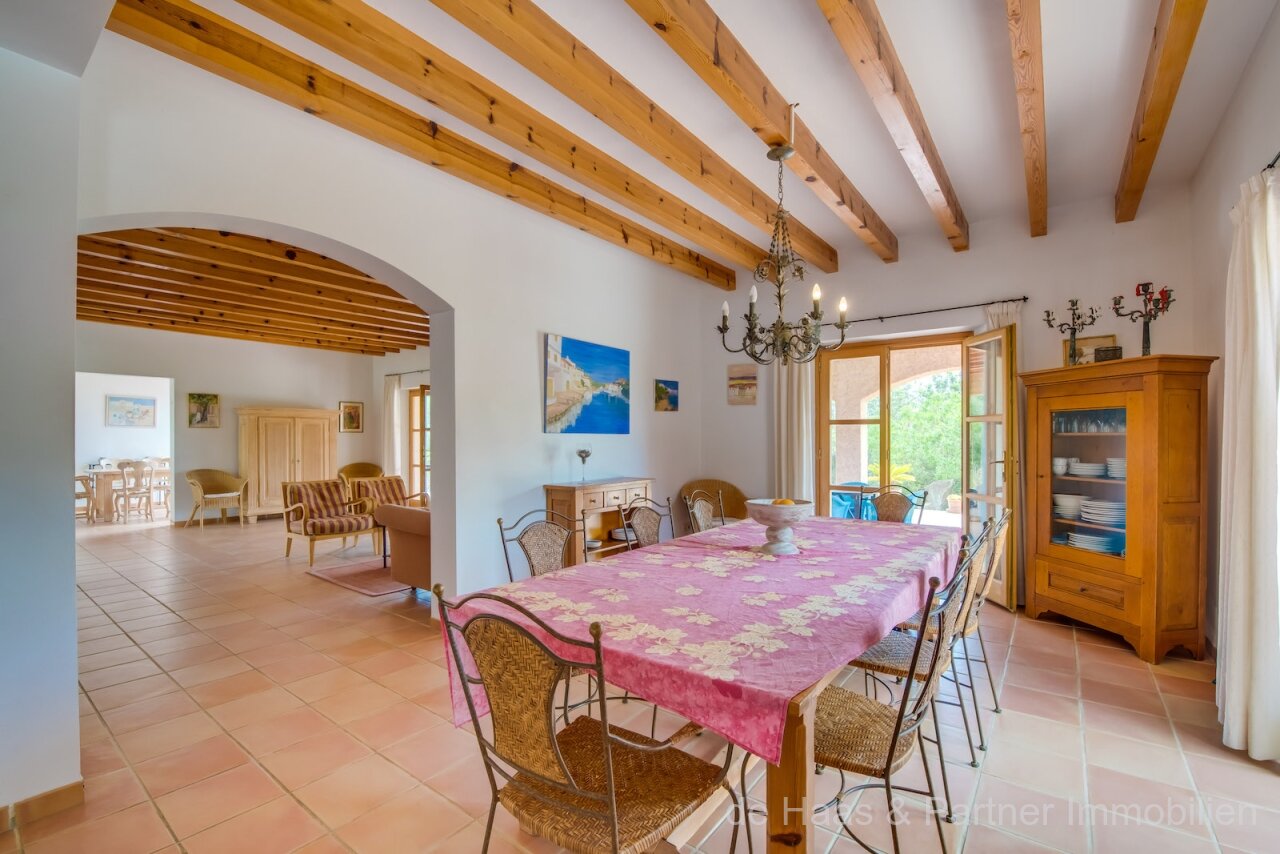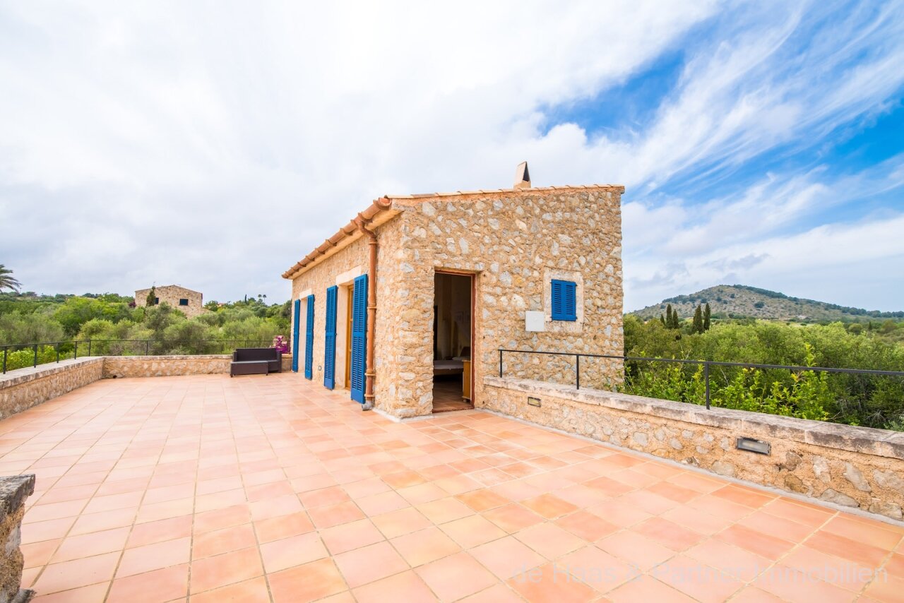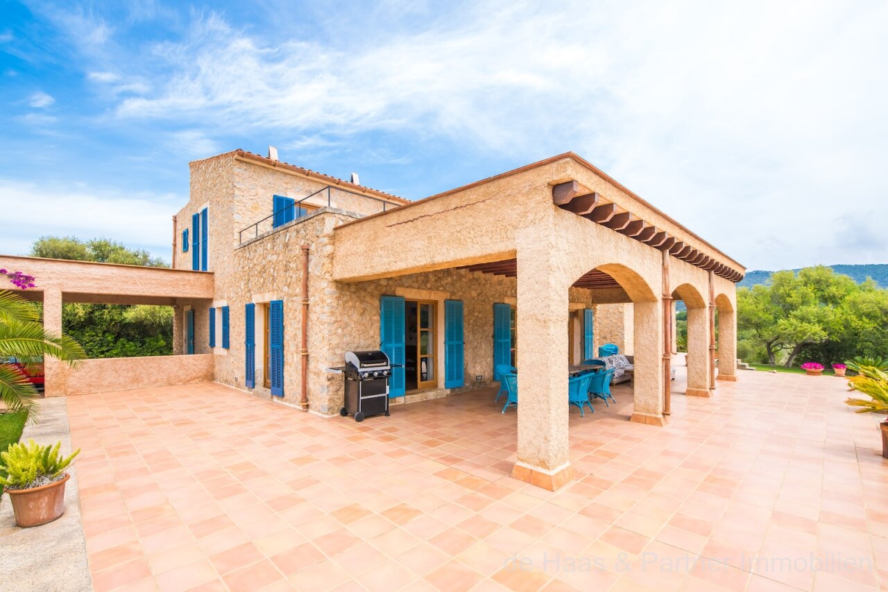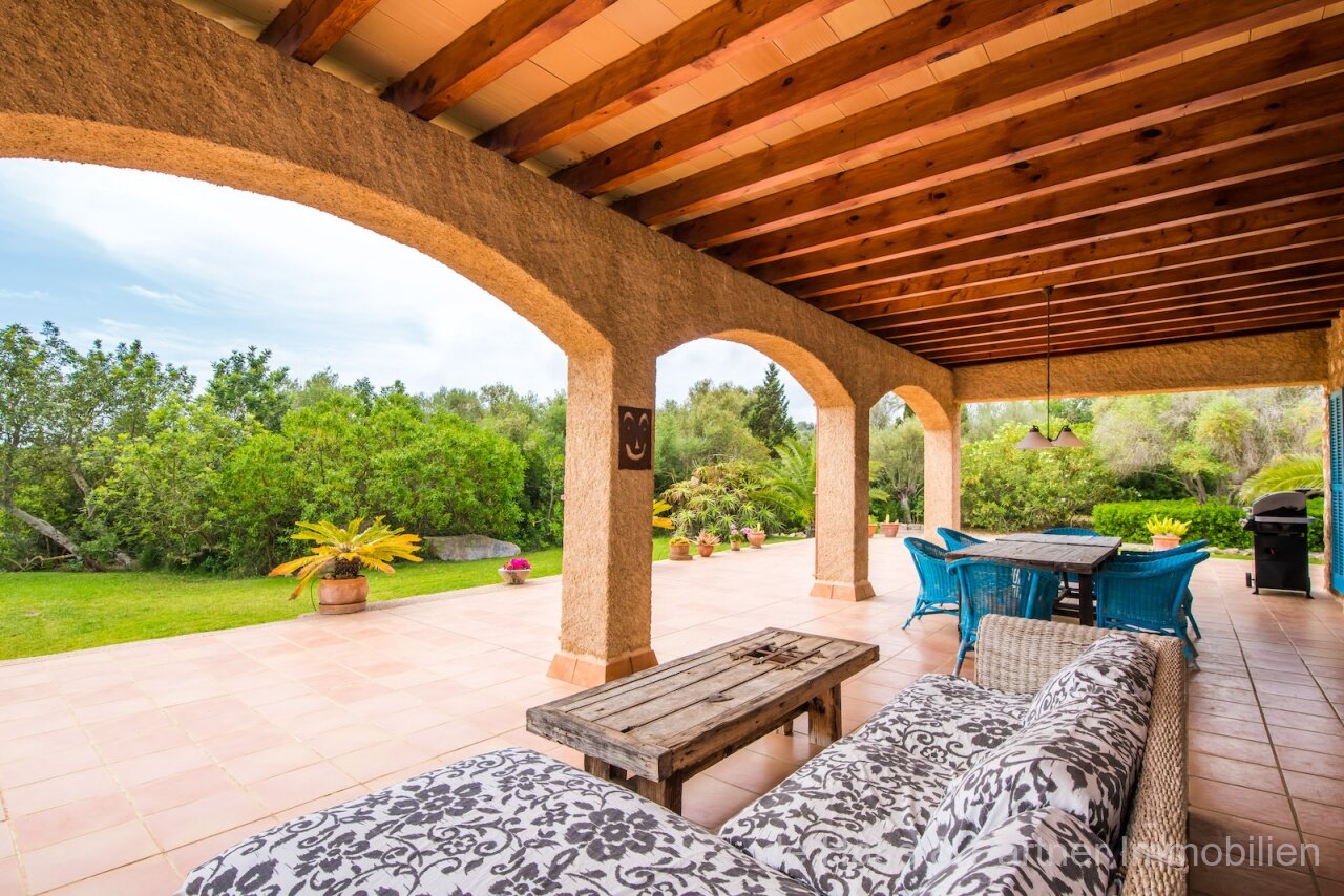 Finca is in a very good and quiet location near Son Servera and Costa de los Pinos. Best sea view of the bay of Costa de los Pinos. Well-kept plot (approx. 7.103m2) with beautifully landscaped gardens.