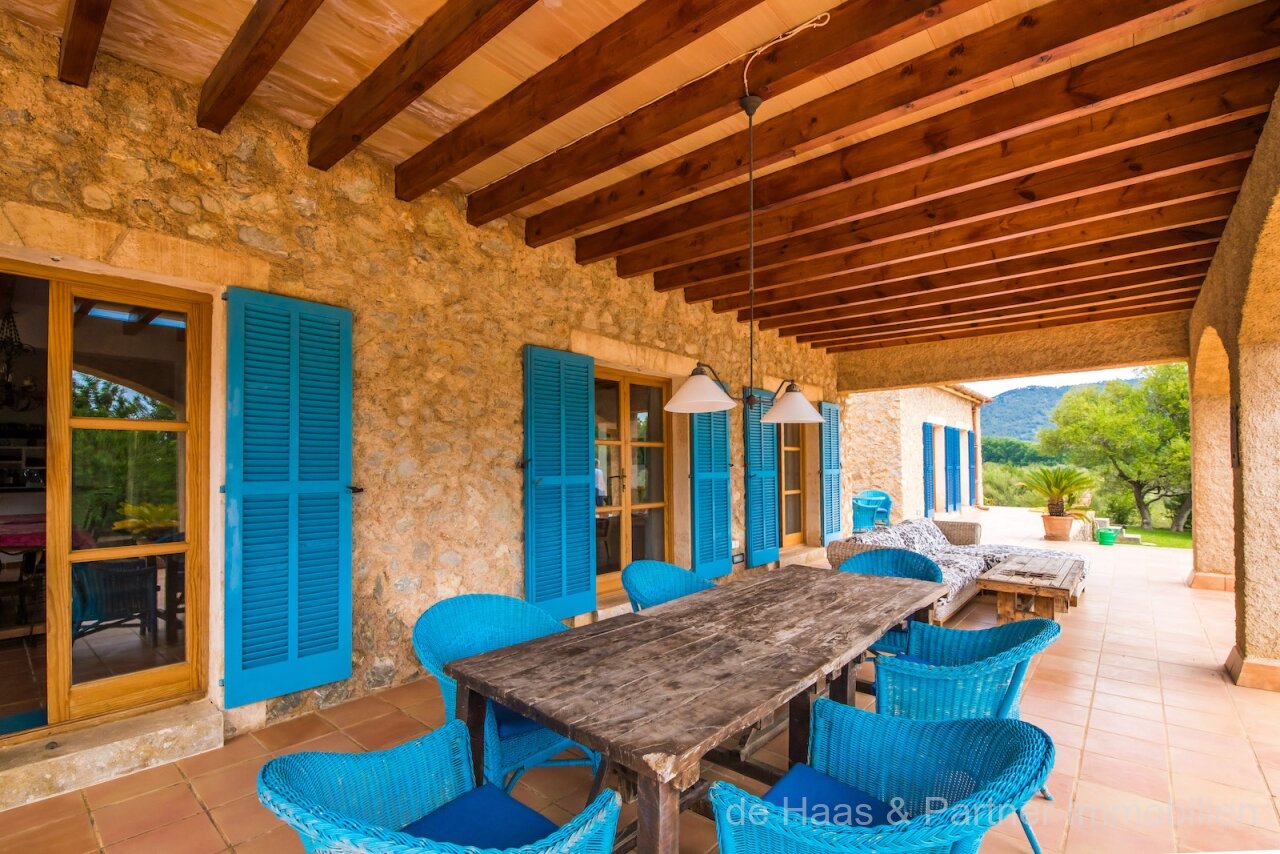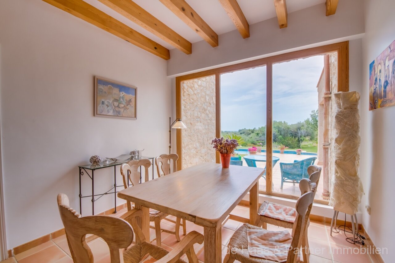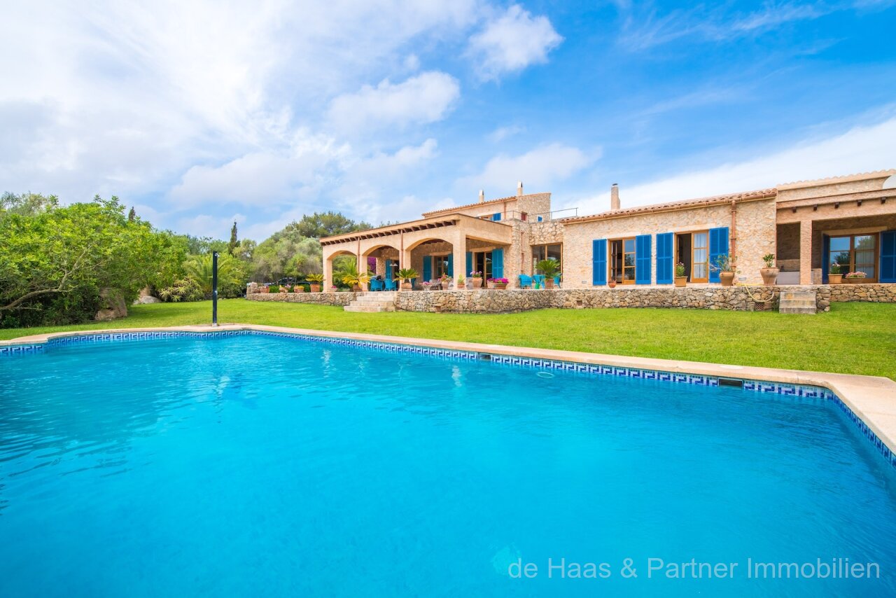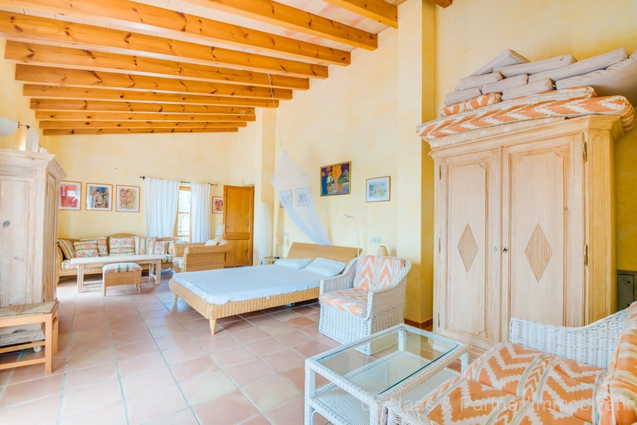 Finca is in a very good and quiet location near Son Servera and Costa de los Pinos. Best sea view of the bay of Costa de los Pinos. Well-kept plot (approx. 7.103m2) with beautifully landscaped gardens.