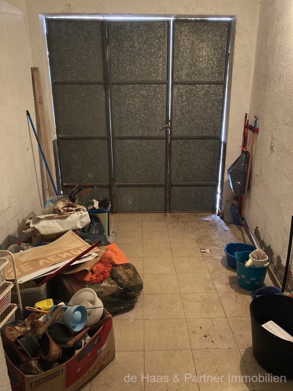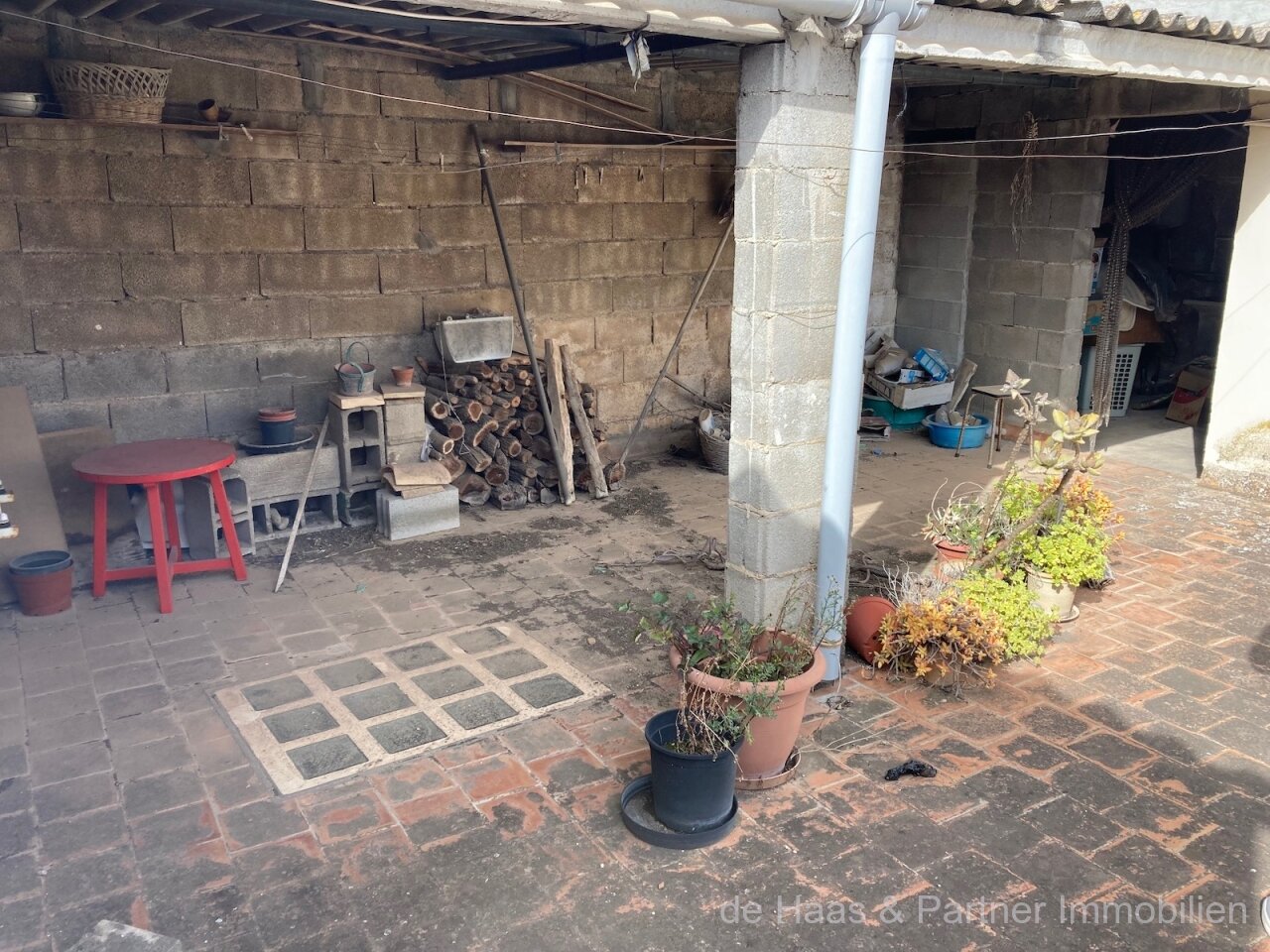 At the back of the ground floor, you will find a separate cosy kitchen with fireplace and dining area. From there, you also have access to the bathroom with shower and the small garage behind.