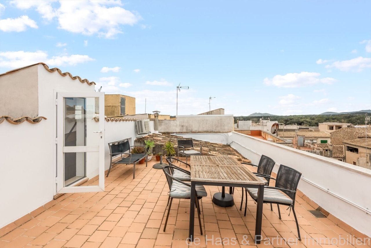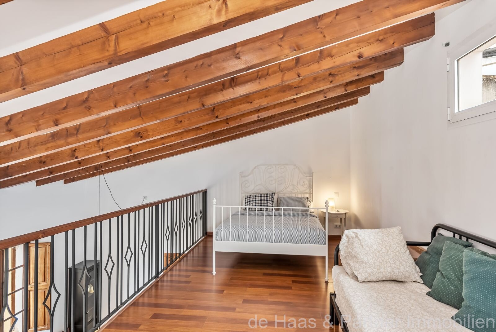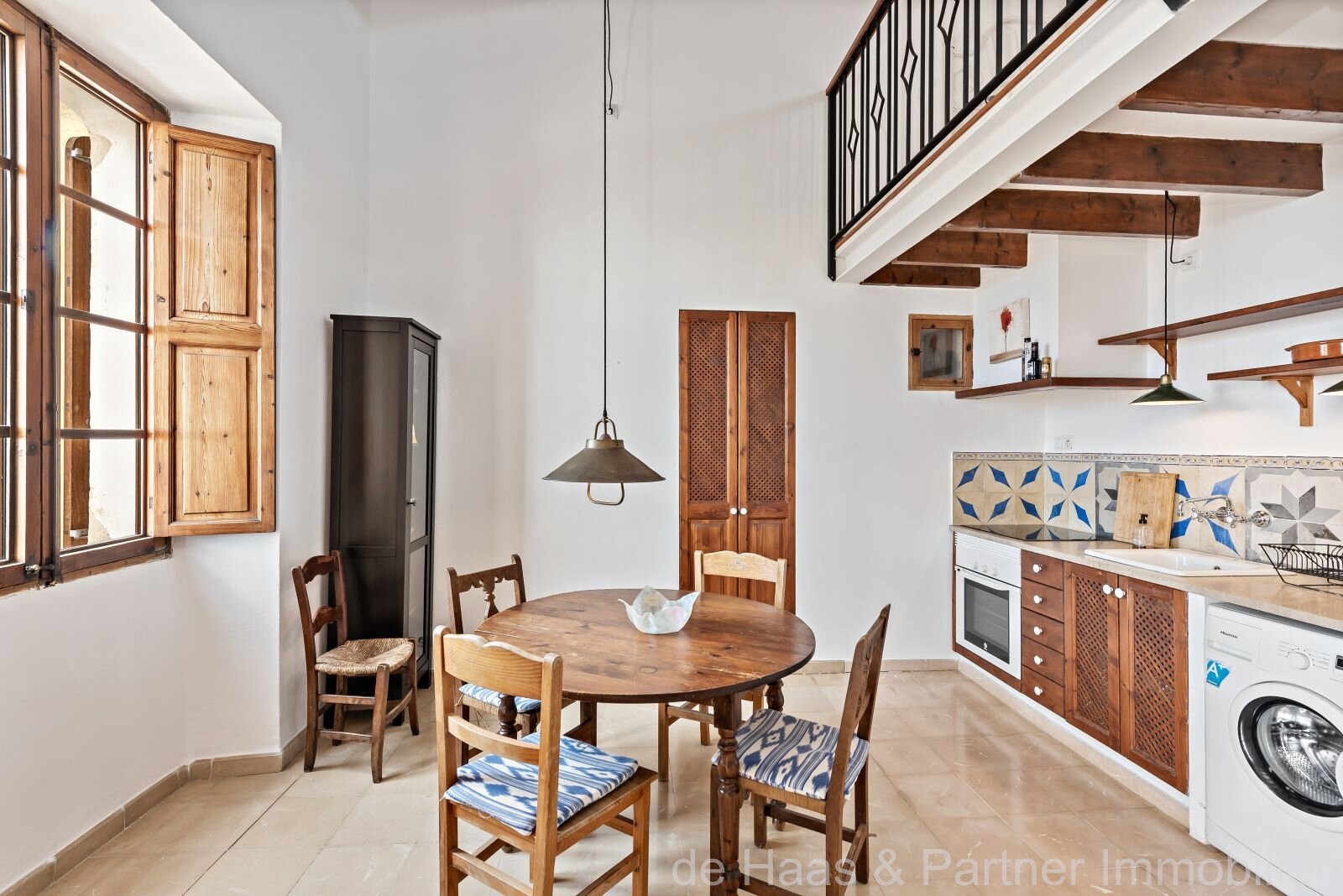 Flat with open-plan living/dining room and kitchen, (open to the top) bedroom, bathroom and gallery (now used as an open-plan bedroom). The roof terrace even offers distant sea views.