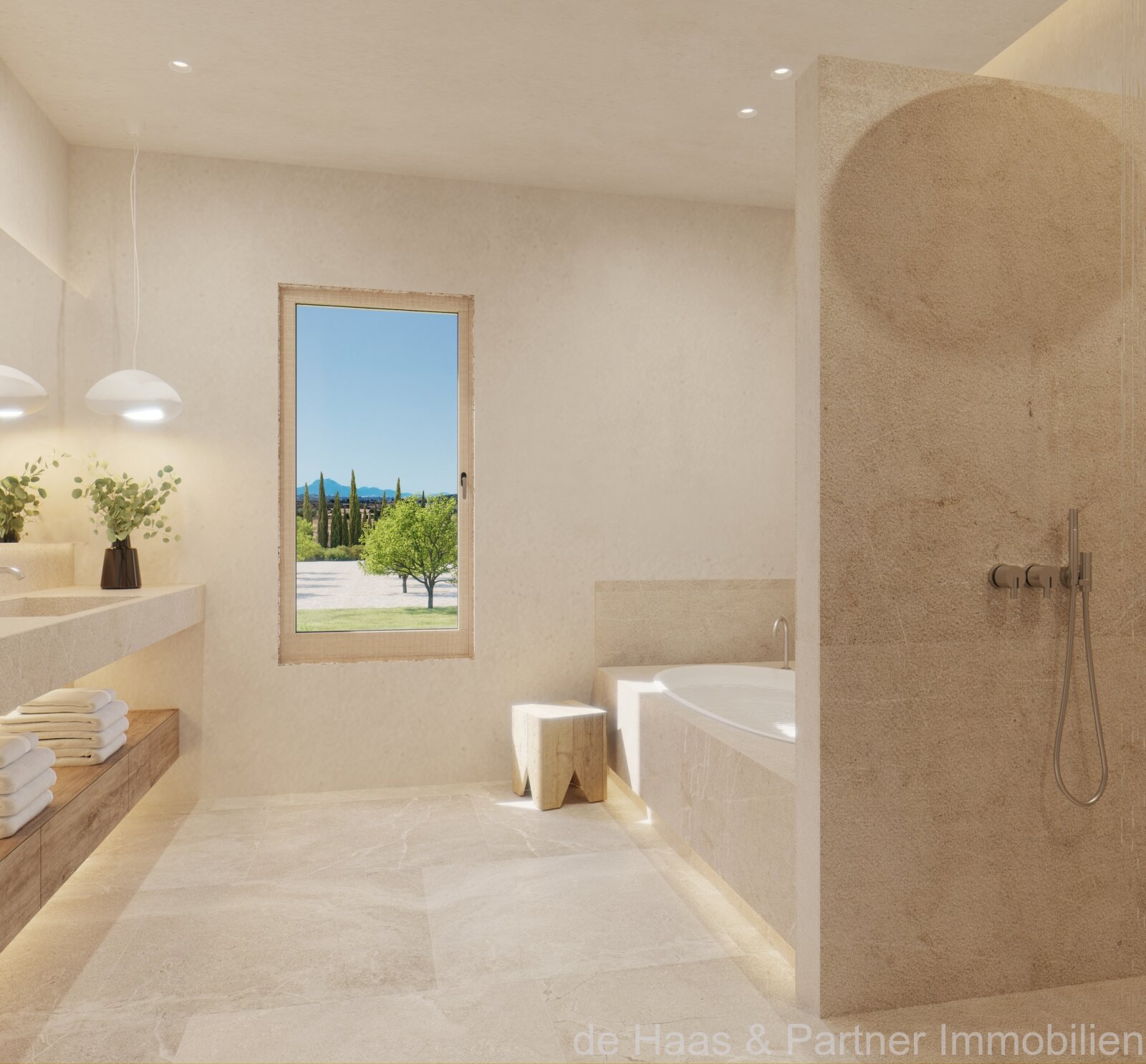 This modern finca (built in 2024) is situated in an elevated position a few minutes from Manacor near the village of Petra. It offers fantastic views with sunrises and sunsets.