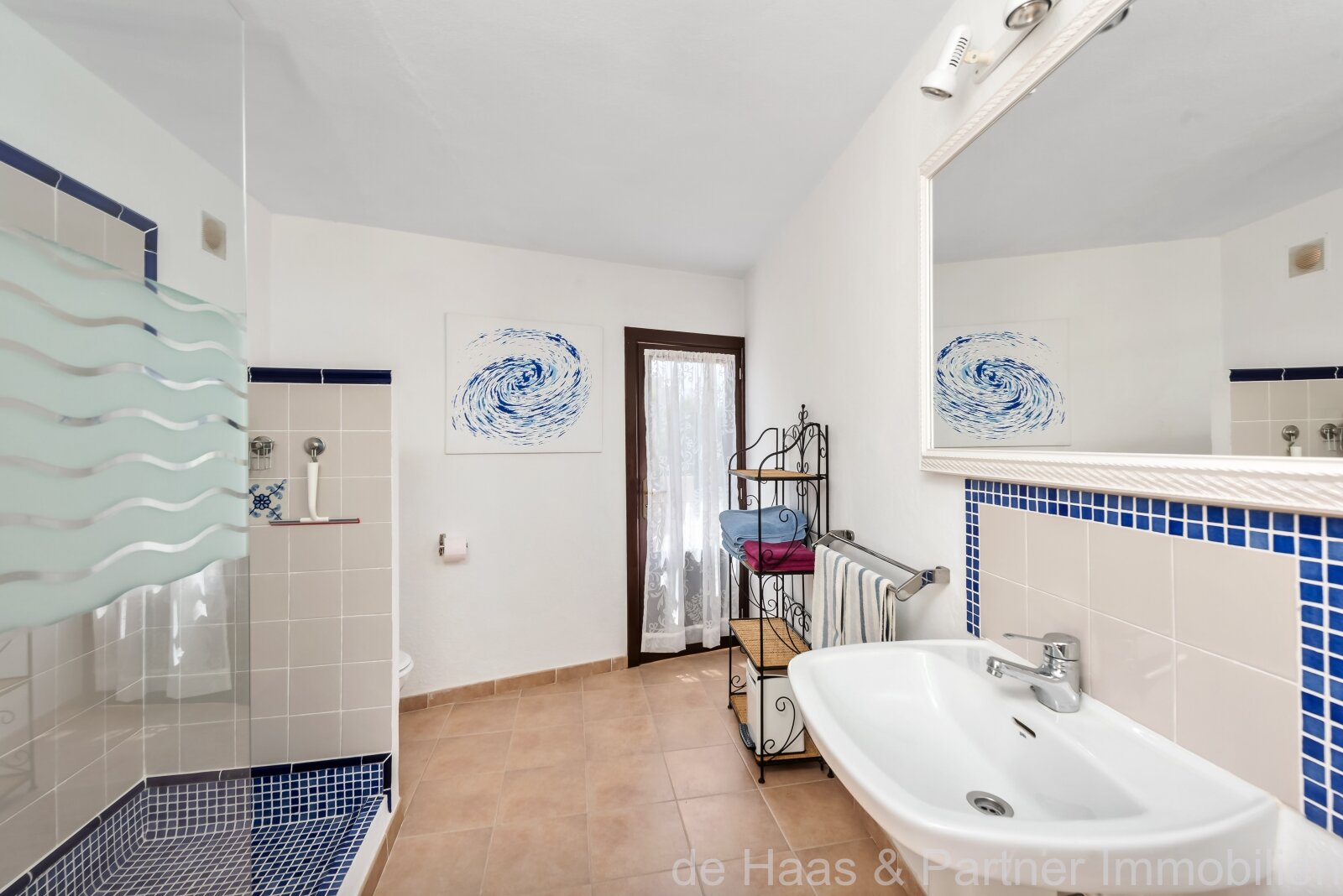 Both an external staircase and the hallway of the entrance area lead to the first floor. There is a bedroom with an en-suite shower bathroom and access to a small terrace at the rear. An external staircase leads from there to the ground floor.