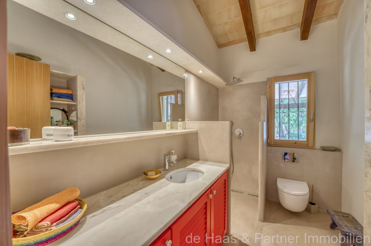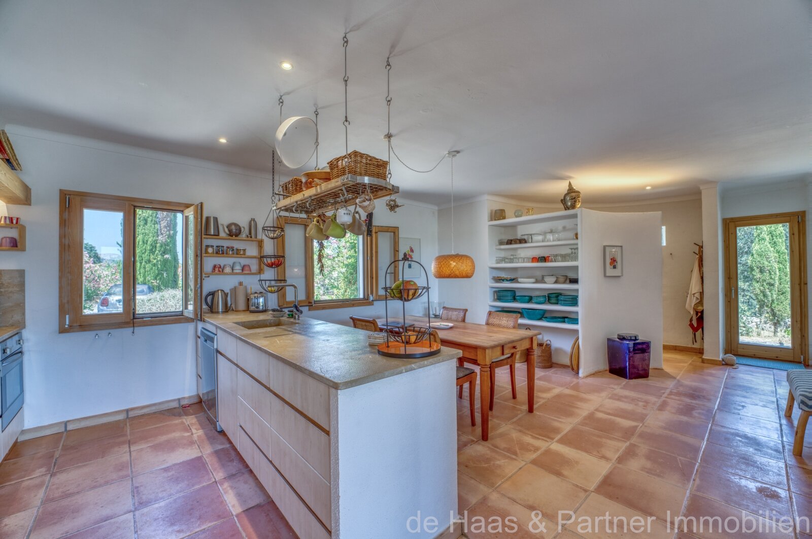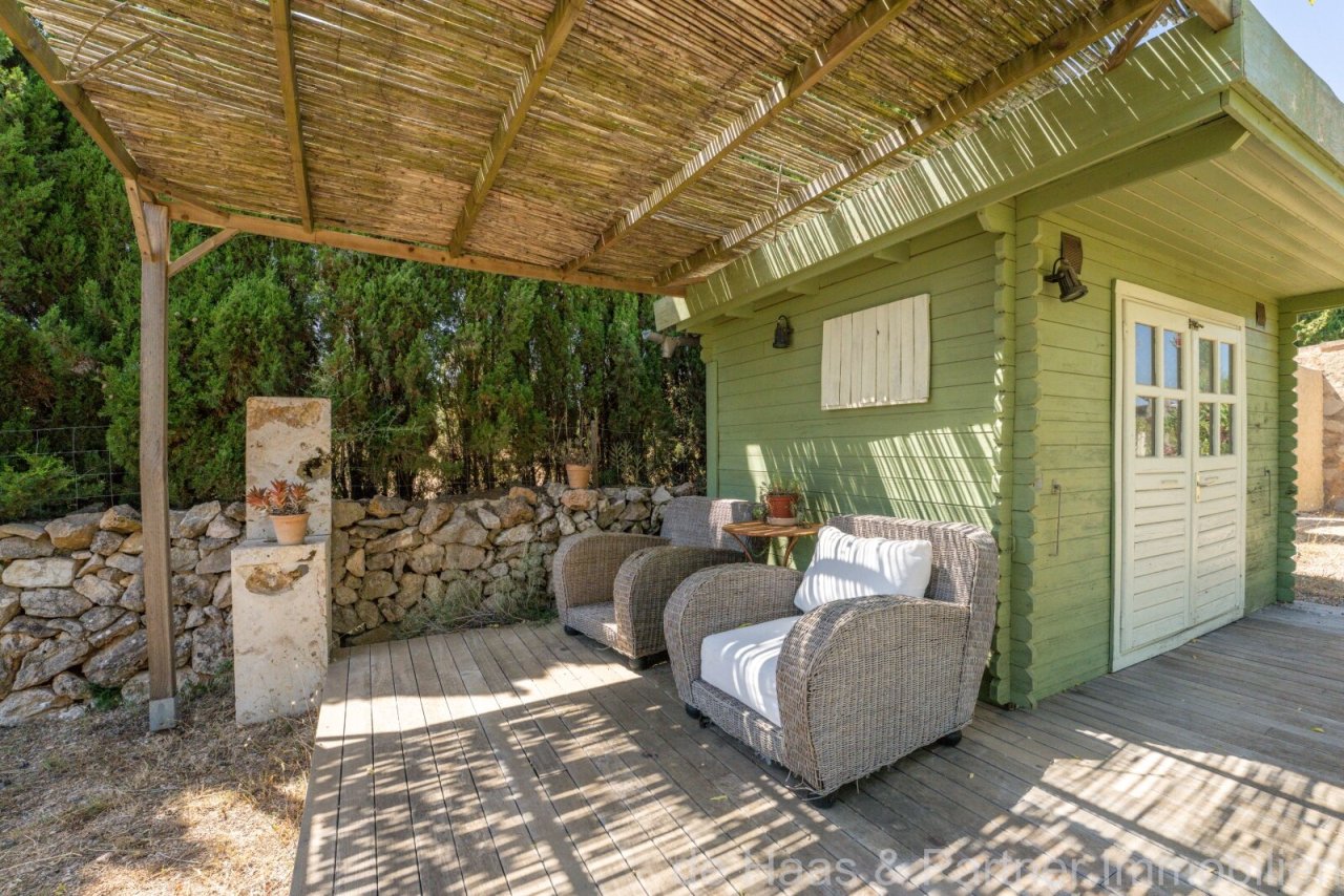 The property (approx. 5,502 m²) and the garden are beautifully landscaped in a Mediterranean style with palm trees, old olive trees, holm oaks, fruit trees, oleander and many surprises.