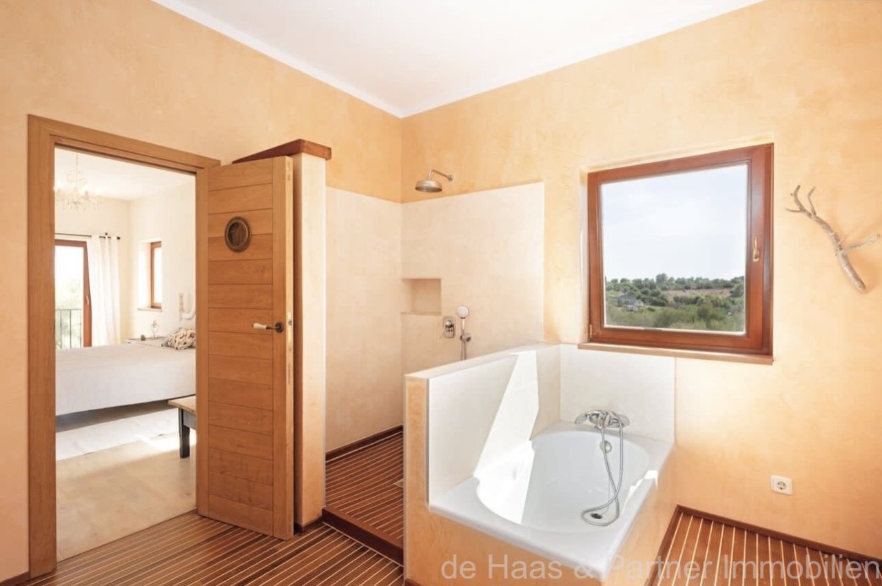 Externally, the finca is clad in Mallorcan natural stone. The interiors have been lovingly designed. A nautical touch has been incorporated throughout the finca, such as the real wooden floors from a sailing boat in one of the bathrooms.