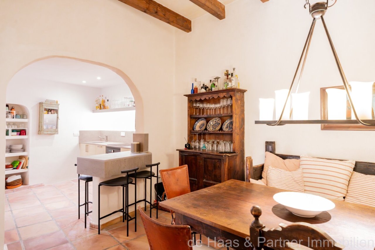This approximately 300-year-old townhouse is located below the castle, near Plaza Sitjar in a picturesque, small and quiet cul-de-sac. Parking is available in the immediate vicinity. Orient Square with its lovely restaurants and a well-stocked supermarket is only 200 metres away.