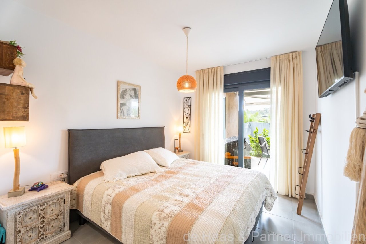 This lovingly and tastefully furnished ground floor flat is located in a beautiful complex. Enjoy the Mediterranean-style garden from your terrace, which offers a view of the nature reserve. The bay of Font de Sa Cala with its fine sandy beach and crystal clear water is within walking distance.