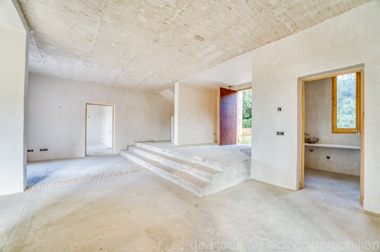 The finca (construction began in 2006) is located above San Llorenç on a beautiful plot (approx. 14,700m²) and offers wonderful views of the countryside stretching all the way to the sea in total tranquillity. Relaxation is guaranteed here. The Mallorcan village of Sant Llorenç is just a few minutes' drive away.