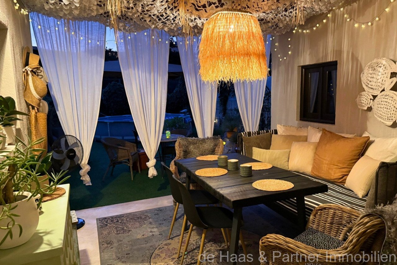 The house is fully air-conditioned, tastefully furnished and ready to move into immediately. The interior impresses with a lovingly coordinated, light colour scheme that creates a welcoming and stylish living atmosphere.