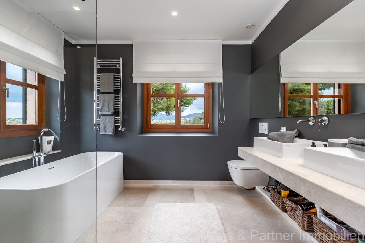 Con esta finca de lujo construida en estilo mallorquín cerca de Sant Llorenç, no sólo disfrutará de una enorme vista panorámica sobre Mallorca y puestas de sol de ensueño. El mobiliario, la zona exterior, el concepto de planta abierta, los materiales y muchos aspectos técnicos destacados le inspirarán.