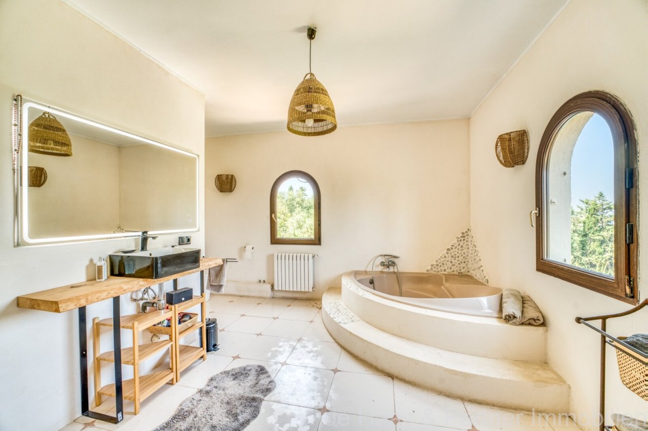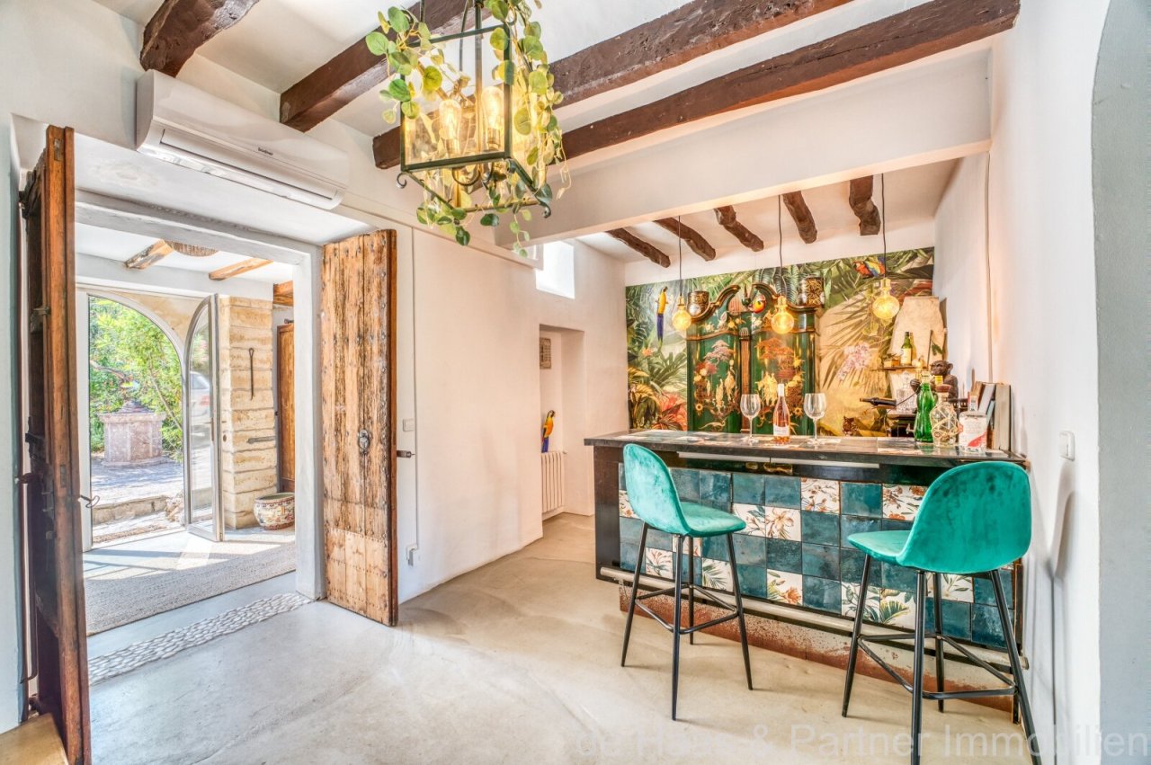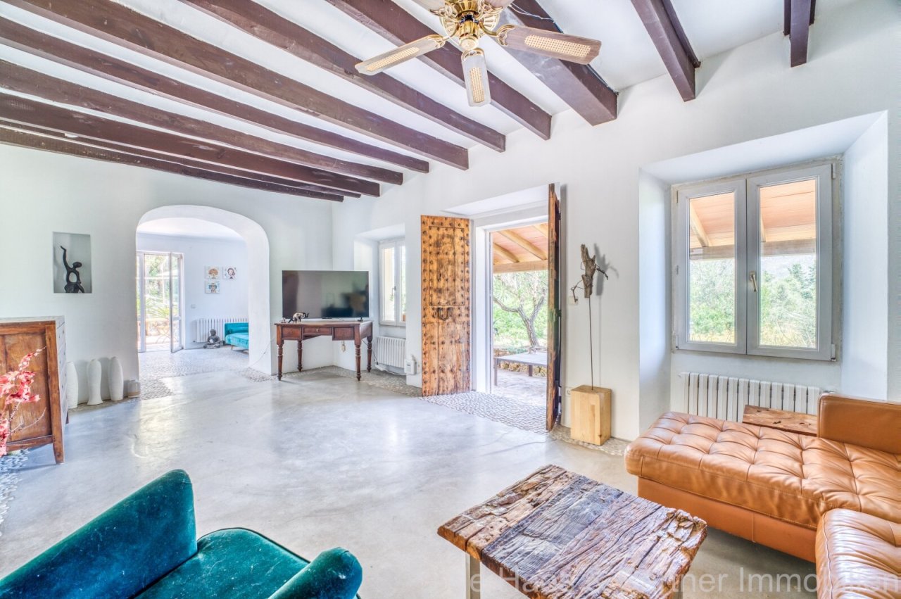 Después de la zona de recepción se encuentra el corazón de la casa, una sala de estar en forma de L con acceso a la gran terraza cubierta de 32 m². La sala con chimenea contigua da acceso a la terraza de la piscina con orientación suroeste.