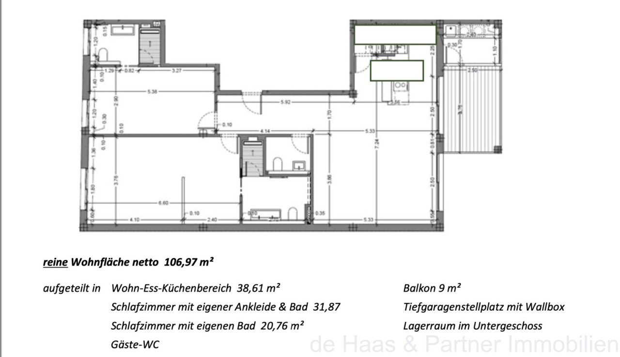 Los apartamentos en venta tienen diferentes distribuciones: dos o tres dormitorios, 2 baños, salón-comedor con cocina abierta y acceso al balcón/terraza, pasillo, lavadero. Cada apartamento cuenta con una plaza de aparcamiento subterráneo con caja de enchufe y un trastero.