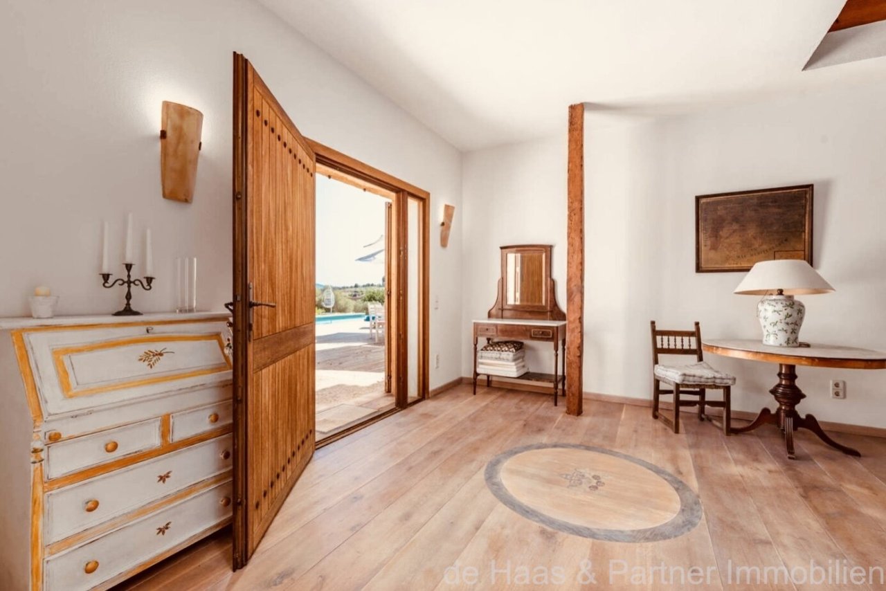 Esta finca ofrece unas vistas panorámicas hasta el mar y una ubicación absolutamente tranquila. La finca, situada en una parcela de unos 16 881 m², cuenta con 6 dormitorios y 5 baños, por lo que es ideal para una familia numerosa. Las playas, los pueblos y los campos de golf de los alrededores se encuentran a pocos minutos en coche.