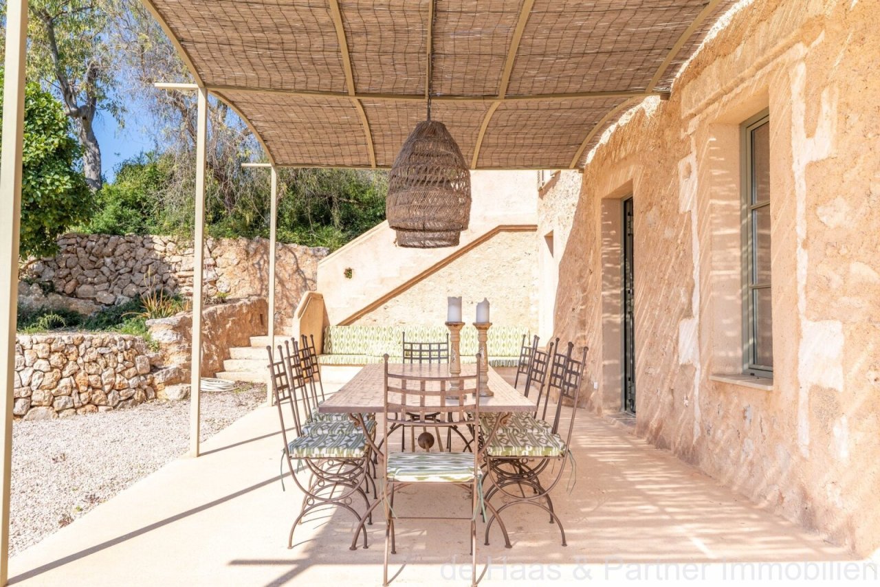 Esta finca renovada (construida en 2015), se encuentra en las colinas de la costa este, entre los pueblos mallorquines de Porto Cristo y Portocolom. Su tranquila ubicación y su proximidad a calas de ensueño, como Cala Murada o Cala Magrana, hacen de esta finca un lugar muy especial.