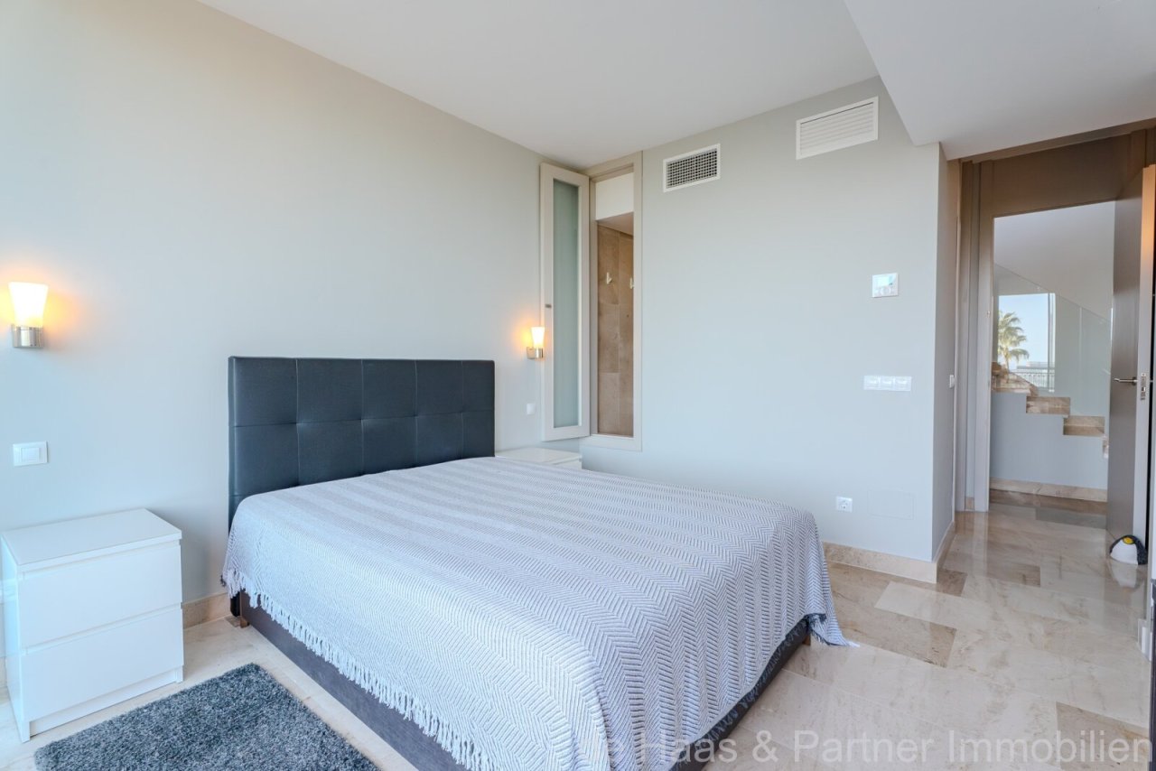 Planta superior: otro dormitorio con vestidor y baño en suite, así como acceso a una azotea privada desde la que se puede disfrutar de unas vistas únicas al mar.