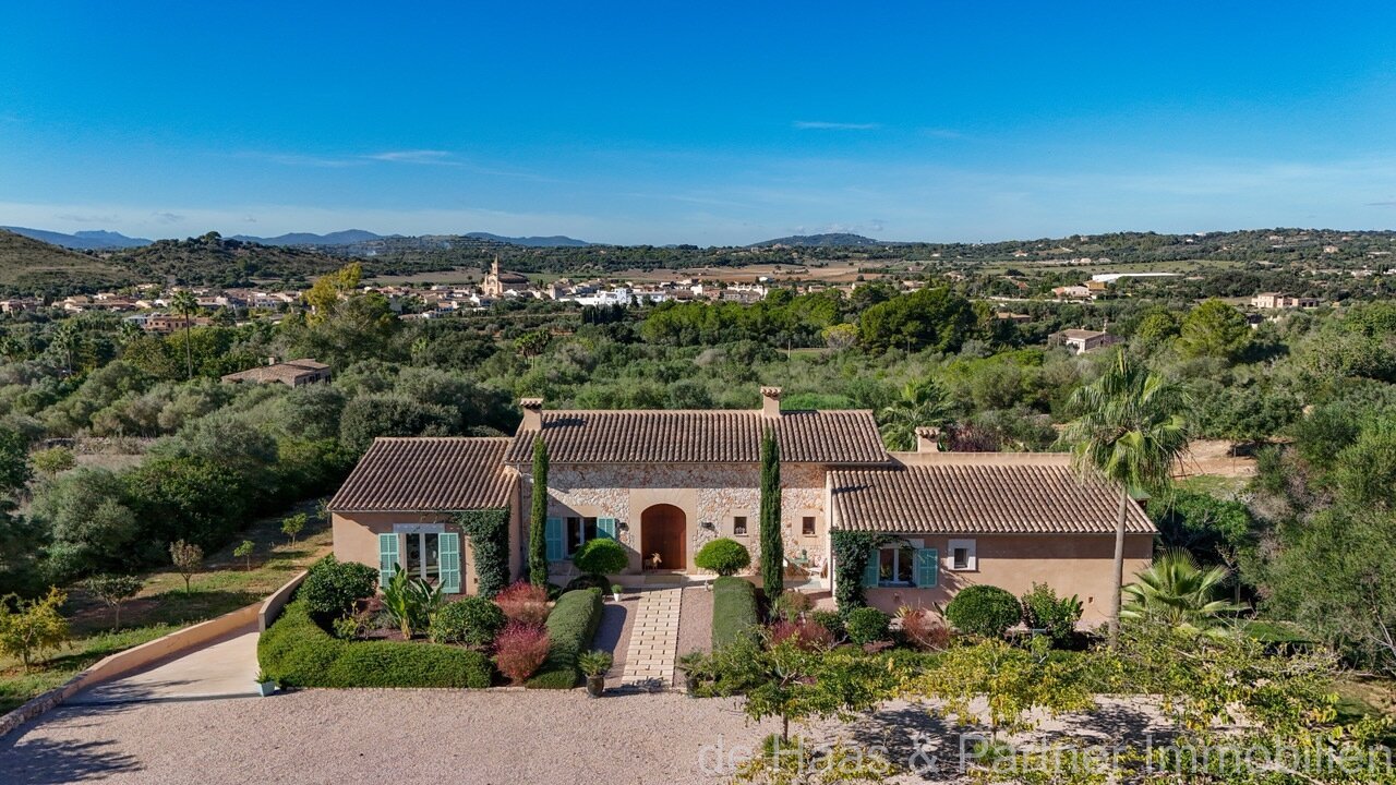 Esta finca, como nueva, se encuentra sobre el tranquilo pueblo de Son Carrió, que pertenece al municipio de San Llorenç. El mar, Cala Millor y Porto Cristo, con su playa y numerosos restaurantes, así como cuatro campos de golf, se encuentran a poca distancia. El aeropuerto está a 45 minutos en coche y Palma a 55. La casa es accesible por una carretera en muy buen estado, se encuentra en una ubicación aislada y ofrece una privacidad absoluta. La finca se construyó utilizando materiales de la más alta calidad. A través de una impresionante puerta de madera se accede al luminoso salón de 5 m de altura, donde inmediatamente se disfruta de una fantástica vista panorámica de la iglesia de Son Carrió. La propiedad se encuentra en una gran parcela de 16 156 m² con orientación suroeste.