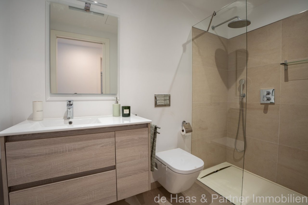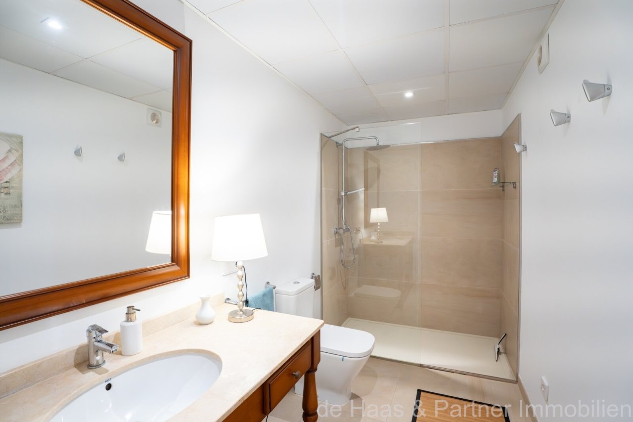 Detrás de la cocina se encuentra el amplio cuarto de baño de invitados, que también está equipado con ducha. Junto a él hay un gran cuarto de servicio con acceso independiente desde el exterior, que también se puede utilizar como dormitorio adicional u oficina.