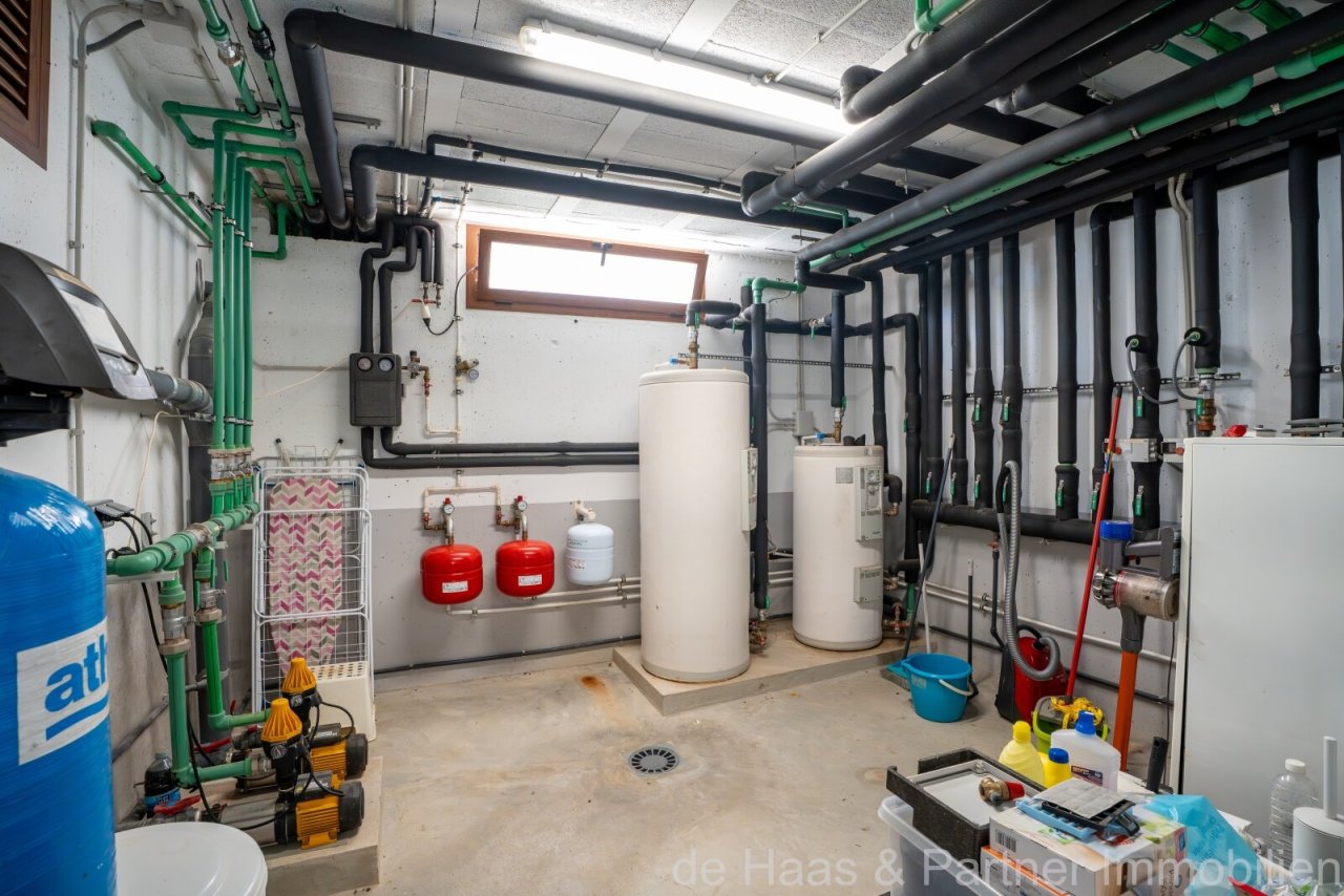 Desde aquí se accede al amplio garaje subterráneo. Aquí hay espacio para al menos 5 coches y hay instalada otra caja de pared. También se encuentran aquí la calefacción (gasóleo), la sala de máquinas y la tecnología solar, que está como nueva. Si lo desea, también se puede construir un gimnasio, una bodega, un cine en casa o similar, ya que hay espacio suficiente.
